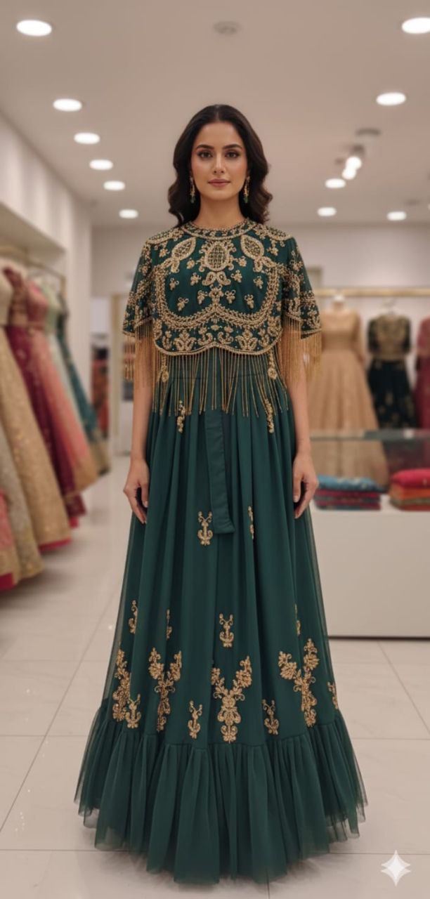 Teal Silk & Crepe Embroidered Sharara Set