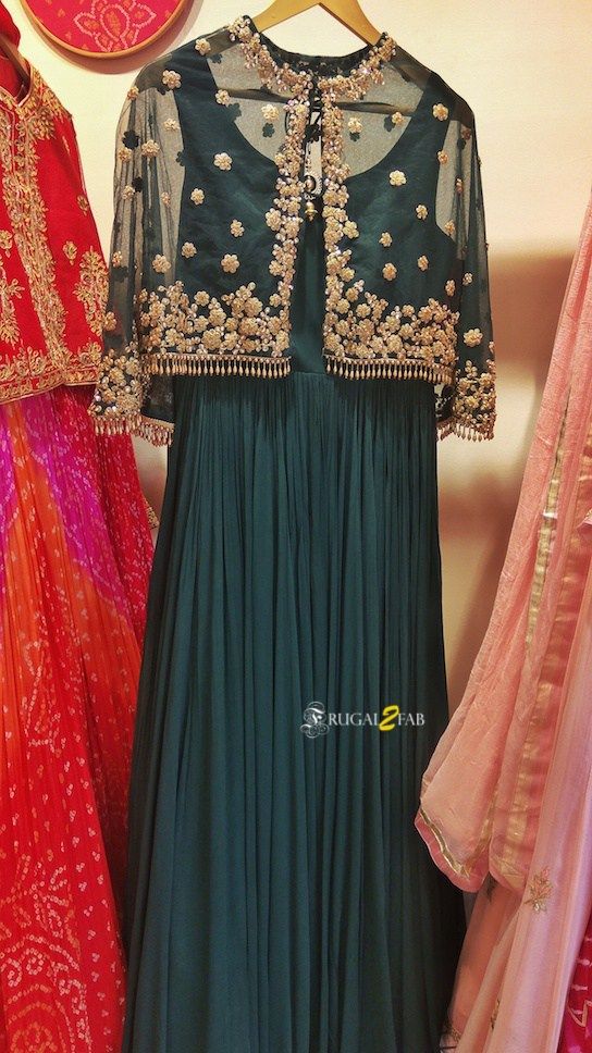 Featuring a teal off-shoulder top in silk and crepe base with sequins, bead and thread hand embroidery. It is paired with embroidered circular sharara pants. Accentuate it with statement earrings and heels for a festive look.